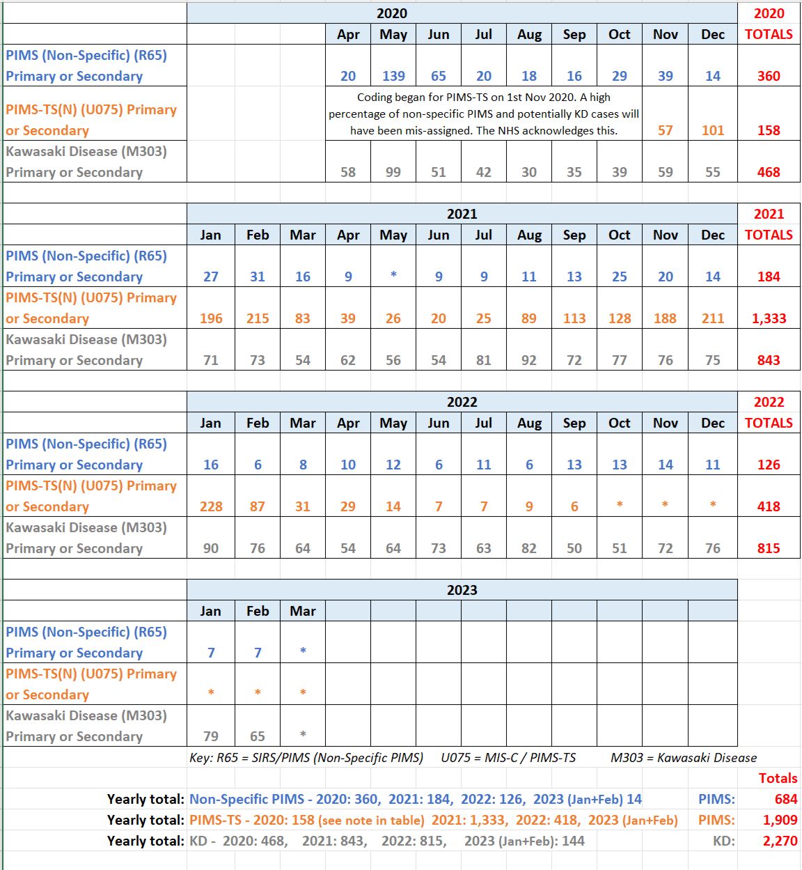Before April 2020, PIMS was being observed but had not yet been defined and therefore not counted. The information gives more detail than previously but does raise some questions: